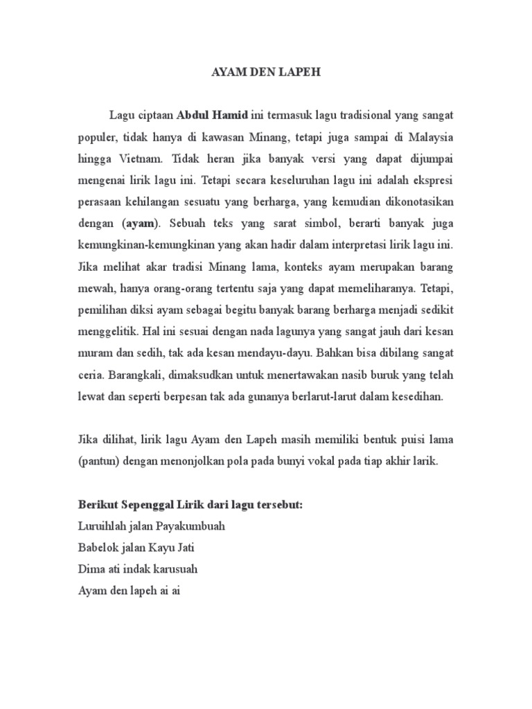 Lyric Chord Ayam Den Lapeh Indonesia Song Pdf Google Drive